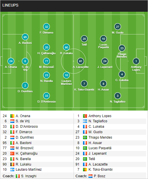 AEGoal chốt kèo bóng đá trực tiếp trận Inter Milan vs Lyon diễn ra lúc 01h30 ngày 31/07 trong khuôn khổ giao hữu cấp CLB sau khi dựa trên tính toán, chuyển động về kèo châu Á và đội hình ra sân của 2 đội.