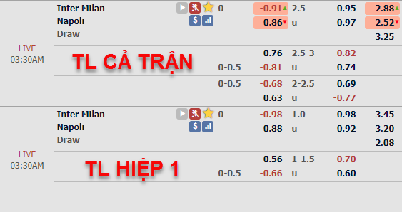 CHỐT KÈO TRỰC TIẾP trận Inter Milan vs Napoli (02H30)
