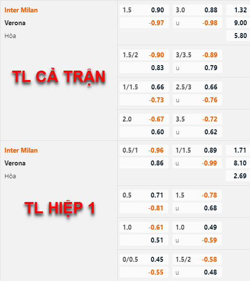 * Chốt kèo trận Inter Milan vs Verona (02h45 ngày 15/1)