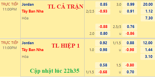 Chốt kèo trực tiếp trận Jordan vs Tây Ban Nha (23h00):