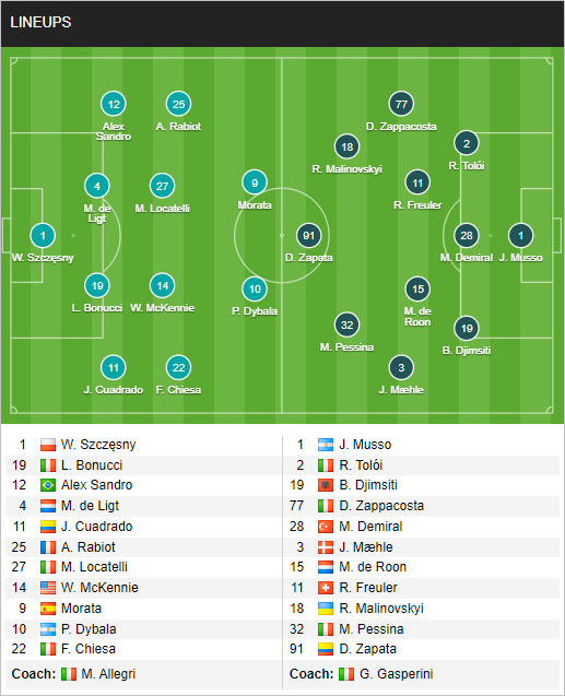 Ở trận này, cả 2 đội đều đã có 1 số thay đổi về nhân sự do vừa trải qua lượt trận áp chót của Cúp C1 Châu Âu hồi giữa tuần, tuy vậy sự thay đổi là không quá lớn. Đáng chú ý là bên phía Atalanta, HLV Gasperini đã có phần thận trọng khi chỉ sử dụng 1 trung phong ở trận này, thay vì 2 như thường thấy.