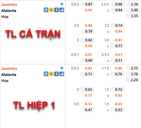 Trên sàn giao dịch châu Á, nhà cái đã dành sự ủng hộ lớn hơn với chủ nhà Juventus khi nâng mức chấp của họ từ 1/4 lên 1/2 cùng điểm ăn được kéo về mức cân bằng. Trong khi ở phương diện tổng bàn thắng, mức 2 3/4 vẫn được duy trì, lại thêm điểm ăn bắt đầu giảm cho cửa Tài, vậy nên cũng có hy vọng cho mốc trên của trận đấu.