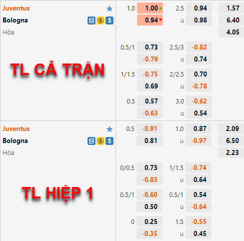 Tỷ lệ của Juventus có xu hướng tăng điểm thời gian vừa qua, hiện tại tỷ lệ chấp chính của trận đấu vẫn được nhà cái châu Á duy trì ở mức 1 hoà như lần chúng tôi cập nhật trước nhưng điểm ăn của cửa trên đã được điều chỉnh giảm. Trong khi đó tỷ lệ tài xỉu của trận đấu không có biến động, mốc 2 1/2 vẫn là mốc chính và điểm ăn 2 cửa cũng không có thay đổi nào.