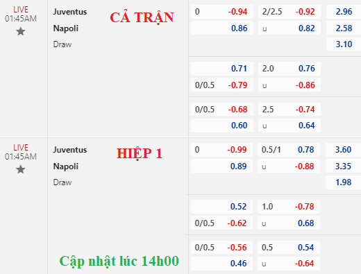Với đội hình như vậy, việc Napoli dần nhích nhẹ lên chấp đồng banh cũng dễ hiểu, tuy biến động chưa lớn. Đáng nói là tài xỉu vẫn ở mức thấp 2 1/4, còn bỏ sâu cho lựa chọn tài. Mốc như vậy khó đem đến hy vọng về sự cởi mở.