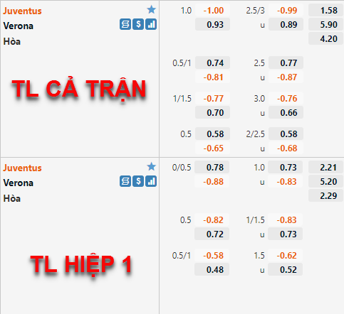 Diễn biến trên sàn giao dịch châu Á cho Juventus được dự đoán sẽ có trận đấu khó khăn hôm nay. Nhưng theo chúng tôi Juventus vẫn đang duy trì được phong độ rất ổn định, với lực lượng hiện tại đội chủ nhà hoàn toàn đủ khả năng kết thúc trận đấu với 3 điểm trong tay. Việc thắng tới 8/9 tiếp đón Verona sẽ giúp các cầu thủ Juventus có tinh thần thi đấu tốt hơn trận này.