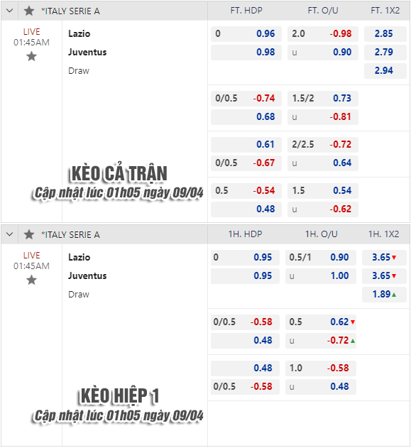 * Chốt kèo trận Lazio vs Juventus (01h45 ngày 09/4)