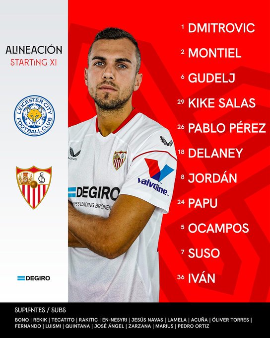 Sevilla: Bounou; Navas, Marcao, Rekik, Acuna; Delaney, Jordan, Rakitic; Ocampos, Mir, Corona