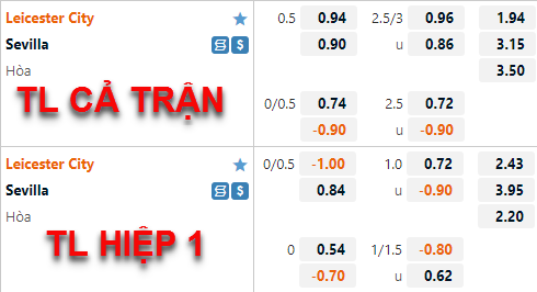 AEGoal chốt kèo bóng đá trực tiếp trận Leicester City vs Sevilla diễn ra lúc 00h00 ngày 01/8 trong khuôn khổ trận đấu giao hữu cấp CLB sau khi dựa trên tính toán, chuyển động về kèo châu Á và đội hình ra sân của 2 đội.
