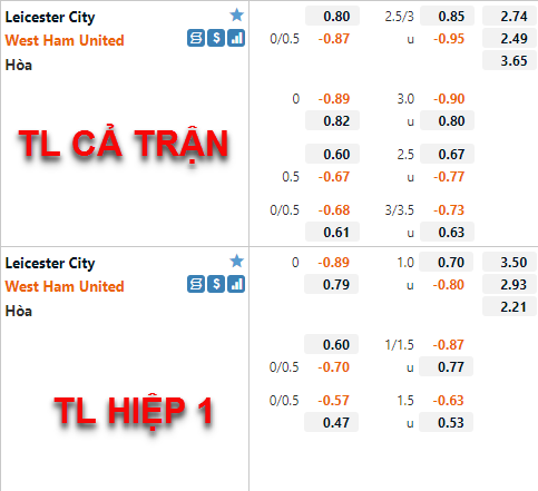 Chốt kèo: Leicester City +0 cả trận