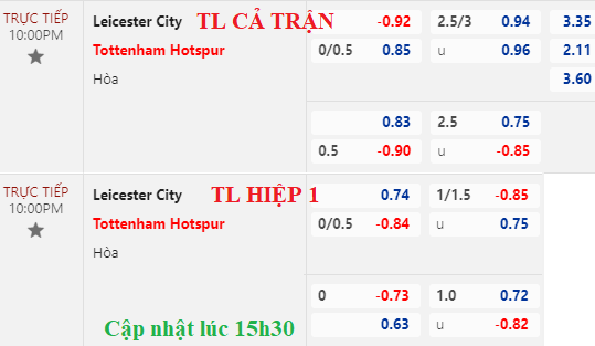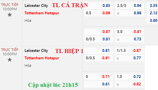 Chốt kèo trực tiếp trận Leicester vs Tottenham (22h00):