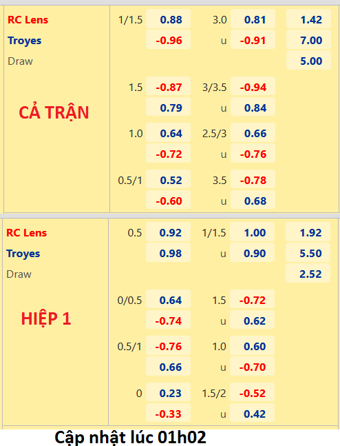 Sau khoảng thời gian giằng co quyết liệt, Lens đã chiếm ưu thế đáng kể từ đầu phiên đến nay. Lúc này Troyes tiếp tục bị đánh giá thấp khi hành quân đesn sân của Lens đang khá tự tin. Đội chủ nhà đã có đà tnưg giá rất hứa hẹn và thể hiện đúng về yếu tố diễn biến trên sàn giao dịch ngày càng tin tưởng vào Lens nhiều hơn.