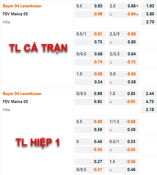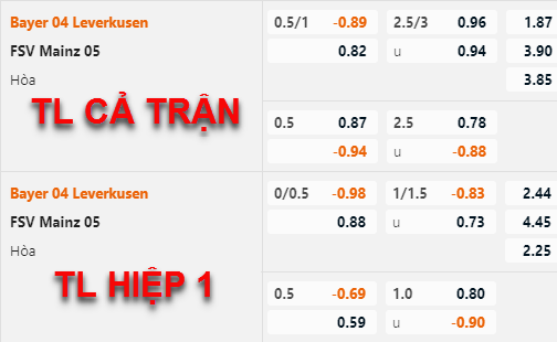 Tỷ lệ chính của trận đấu vẫn được nhà cái duy trì ở mức chấp 1/2 của đội chủ nhà Leverkusen, hiện tại điểm ăn của cửa trên đã được điều chỉnh tăng so với lần chúng tôi cập nhật trước. Bên phía tỷ lệ tài xỉu cũng có diễn biến xuôi chiều khi mốc tài xỉu 2 3/4 trước đây đã được nhà cái thay thế bằng mốc 2 1/2 ở thời điểm hiện tại.