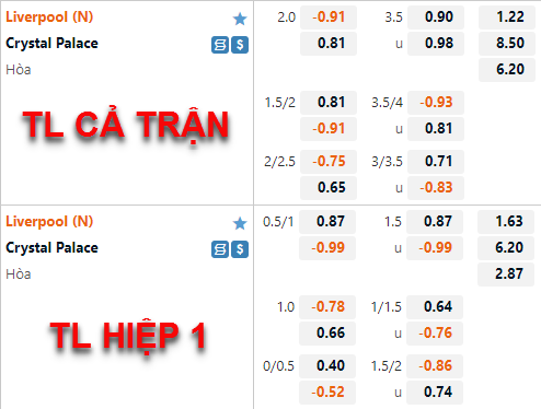 AEGoal chốt kèo bóng đá trực tiếp trận Liverpool vs Crystal Palace diễn ra lúc 19h35 ngày 15/07 trong khuôn khổ giao hữu cấp CLB sau khi dựa trên tính toán, chuyển động về kèo châu Á và đội hình ra sân của 2 đội.