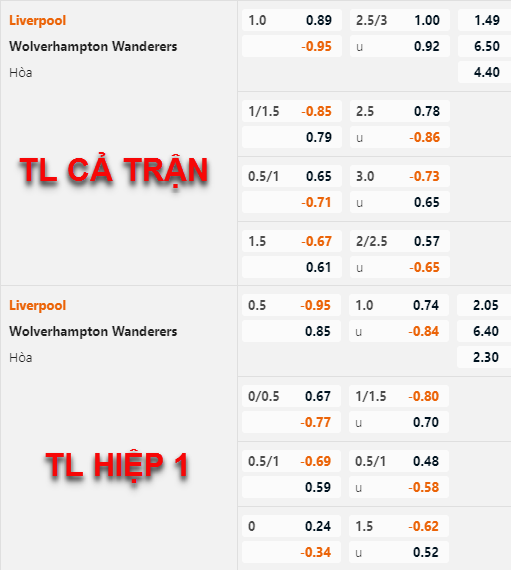Tham khảo: Liverpool -1/2 Hiệp 1