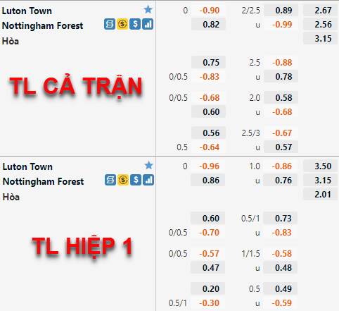 AEGoal chốt kèo bóng đá trực tiếp trận Luton Town vs Nottingham diễn ra lúc 18h30 ngày 15/4 trong khuôn khổ giải Hạng Nhất Anh sau khi dựa trên tính toán, chuyển động về kèo châu Á và đội hình ra sân của 2 đội.