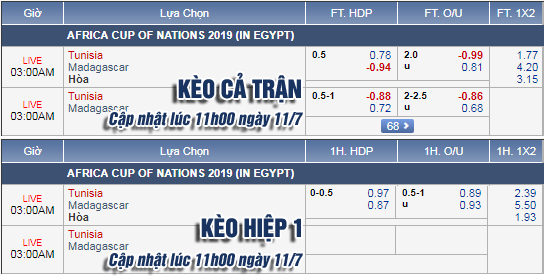 AEGoal.net chốt kèo trực tiếp trận Madagascar vs Tunisia diễn ra lúc 02h00 ngày 12/7 sau khi dựa trên tính toán, chuyển động về kèo châu Á và đội hình ra sân của 2 đội.