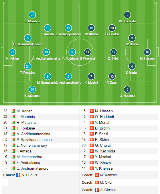 Madagascar (4-3-3): Adrien - Fontaine, Razakanantenaina, Metanire - Amada, Adrianantenaina, Ilaimaharitra - Andriamahitnino, Andriatsima, Nomenjanahary