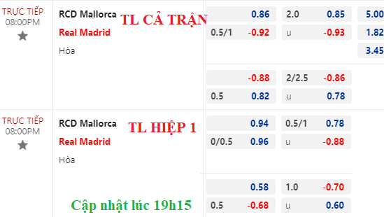 Trên sàn châu Á, Real Madrid chấp 3/4 nhưng điểm ăn bỏ sâu, xu hướng còn dịch chuyển dần về kèo chấp hòa. Trong khi ấy, tài xỉu 2 1/4 vốn dĩ đã thấp lại còn bị điều chỉnh về mức 2 hòa.
