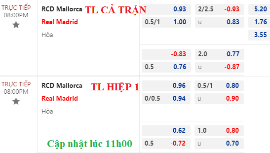 Chốt kèo trực tiếp trận Mallorca vs Real Madrid (20h00):