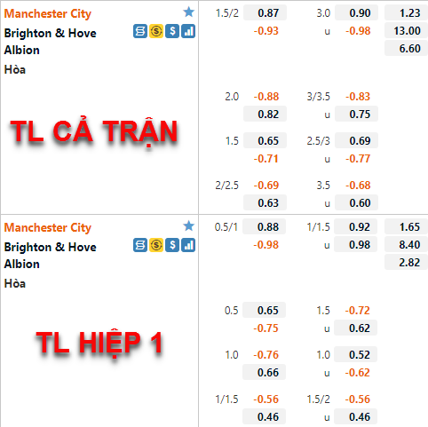 Ở thời điểm hiện tại mức chấp chính 2 hoà của Man City trước đã được nhà cái châu Á kéo xuống mức 1 3/4. Trong khi mốc tài xỉu lại có diễn biến trái chiều khi mức 3 hoà được duy trì là mức chính của trận đấu những điểm ăn của cửa tài đã có xu hướng giảm điểm.