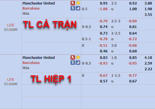 Tỷ lệ chấp 1/2 của Barcelona trên sàn giao dịch châu Á vẫn được nhà cái giữ cho tới thời điểm hiện tại và mức điểm ăn cũng không có biến động nào đáng kể. Ngược lại thì bên phía tỷ lệ tổng bàn thắng cả trận, mức tỷ lệ chính 2 3/4 thời điểm chiều nay đã được thay thể bằng tỷ lệ 2 1/2 thời điểm hiện tại.