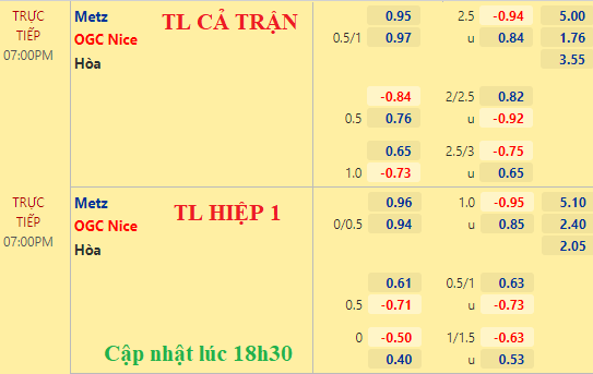 AEGoal chốt kèo bóng đá trực tiếp trận Metz vs Nice diễn ra lúc 19h00 ngày 23/01 trong khuôn khổ giải VĐQG Pháp sau khi dựa trên tính toán, chuyển động về kèo châu Á và đội hình ra sân của 2 đội.