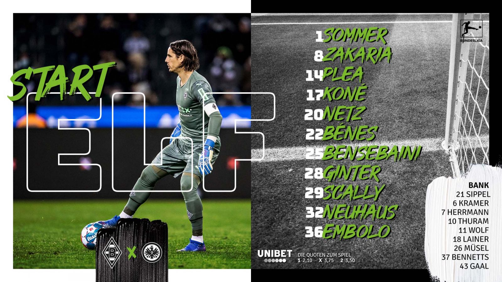 Monchengladbach: Sommer; Scally, Ginter, Elvedi, Bensebaini; Neuhaus, Zakaria, Kone; Plea, Embolo, Thuram