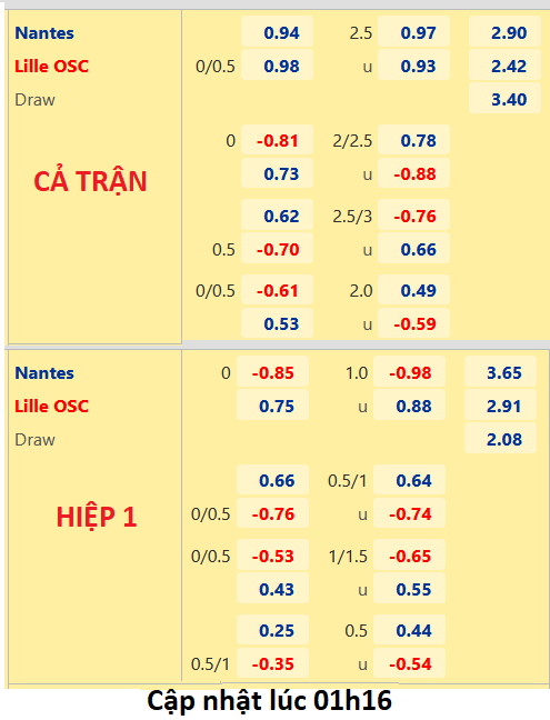 Đã không còn kèo chính 0:0 như thời điểm đầu phiên, Lille đã kéo tỷ lệ ở mức chấp 1/4 cùng lợi điểm cân bằng giữa các lựa chọn đối lập. Cùng với đó là kèo bàn thắng cả trận (tài-xỉu) vẫn giữ được sự ổn định ở chỉ số cao 2 1/2 trên sàn giao dịch châu Á hiện nay. Đây thực tế là diễn biến rất tích cực dành cho Lille trong bối cảnh Nantes đang gặp nhiều vấn đê fngay từ giai đoạn khởi đầu mùa giải mới.