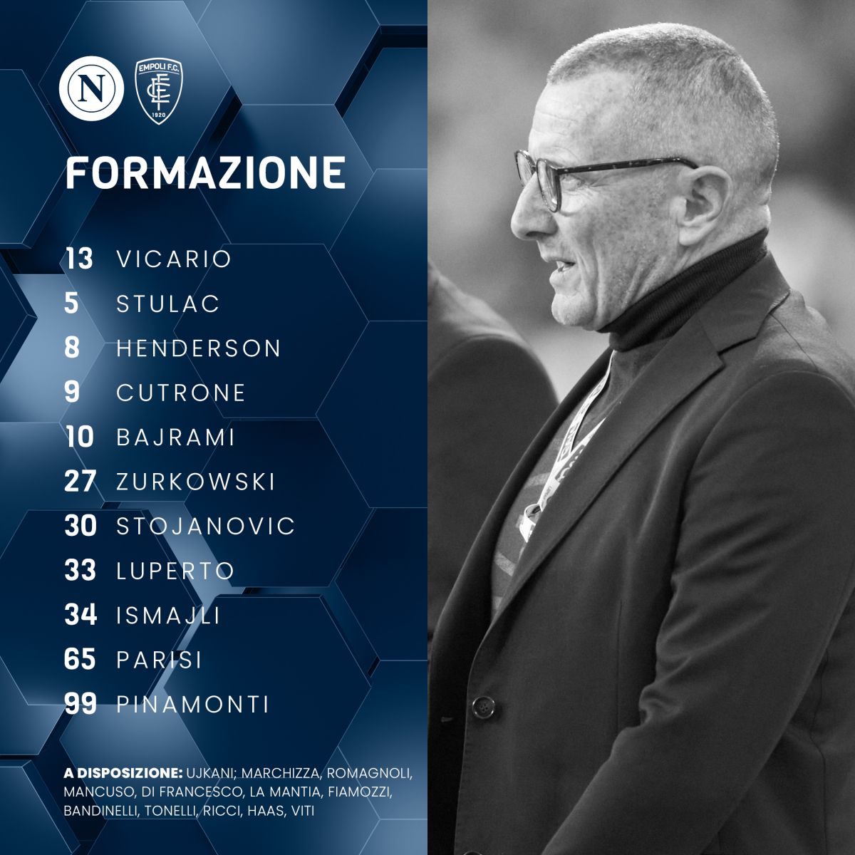 Empoli: Vicario; Stojanovic, Romagnoli, Tonelli, Parisi; Haas, Ricci, Zurkowski; Bajrami; Pinamonti, Di Francesco