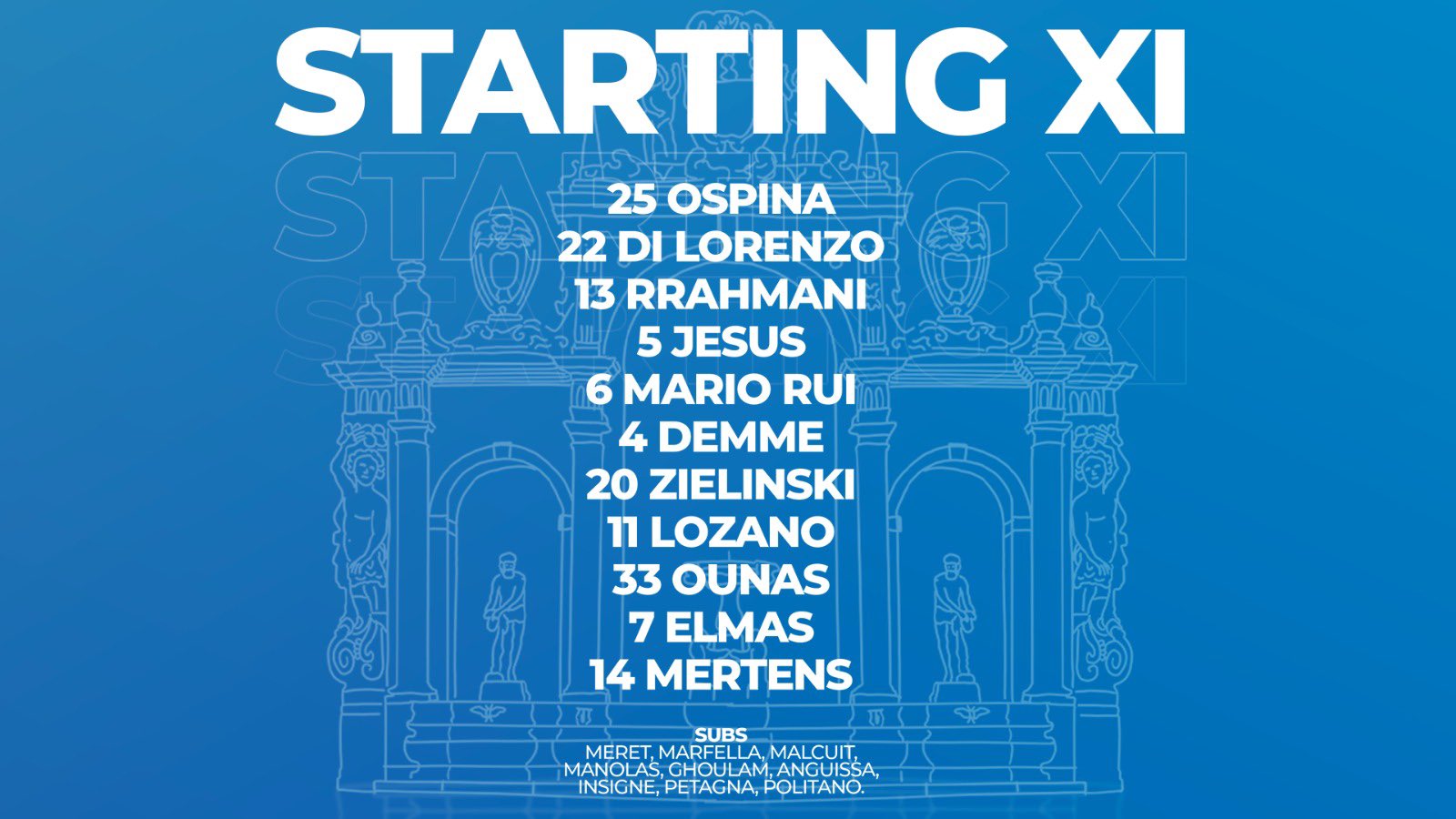 Napoli: Ospina; Di Lorenzo, Rrahmani, Jesus, Rui; Demme, Zielinski; Politano, Elmas, Ounas; Mertens