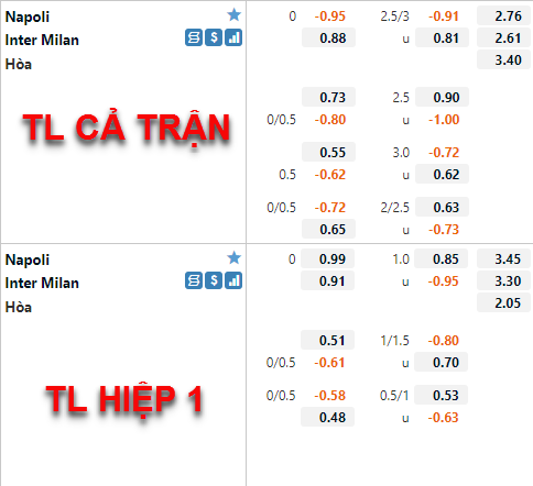 * Chốt kèo trận Napoli vs Inter Milan (00h00 ngày 13/02)