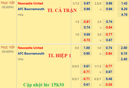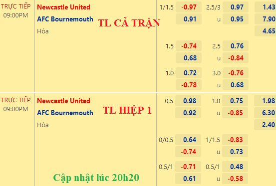 AEGoal chốt kèo bóng đá trực tiếp trận Newcastle vs Bournemouth diễn ra lúc 21h00 ngày 17/09 trong khuôn khổ giải Ngoại hạng Anh sau khi dựa trên tính toán, chuyển động về kèo châu Á và đội hình ra sân của 2 đội.