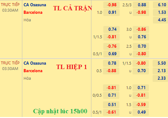 AEGoal chốt kèo bóng đá trực tiếp trận Osasuna vs Barcelona diễn ra lúc 03h30 ngày 09/11/2022 trong khuôn khổ giải VĐQG Tây Ban Nha sau khi dựa trên tính toán, chuyển động về kèo châu Á và đội hình ra sân của 2 đội.