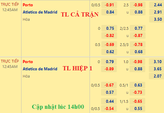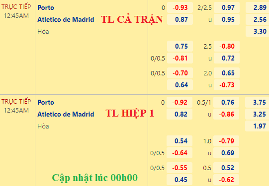 Chốt kèo trực tiếp trận Porto vs Atletico Madrid (00h45):