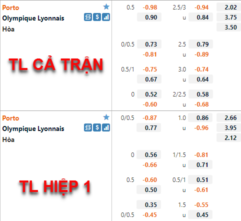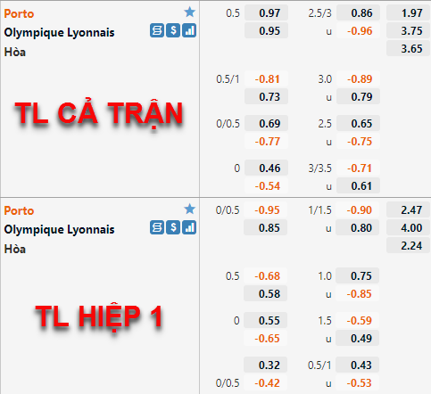 Những diễn biến trên thị trường cho thấy giới đầu tư đang có phần nghiêng về dự đoán cho cửa trên và tài trận đấu này. Dự đoán này hoàn toàn hợp lý bởi Porto đang duy trì được phong độ ấn tương thời gian gần đây trong khi Lyon thi đấu thiếu ổn định, việc nhà cái đưa ra mức chấp 1/2 đấy là mức chấp tương đối cao ở thời điểm công khai trên sàn giao dịch cũng là điểm cộng của đội chủ nhà