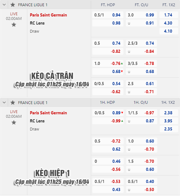 * Chốt kèo trận PSG vs Lens (02h00 ngày 16/4)
