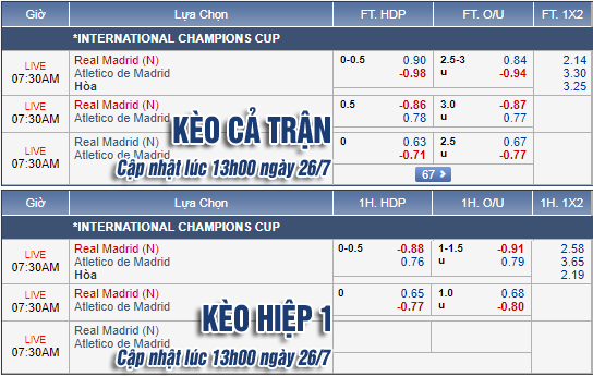 Diễn biến trên sàn châu Á cho thấy Real có chút tăng nhẹ khi các mức điểm lợi nhuận ở kèo chấp 1/4 đã bị hạn chế đáng kể so với chiều lựa chọn Atletico. Tuy nhiên, từ những đánh giá ban đầu và tỷ lệ chưa thực sự bứt phá như vậy, cửa trên bị đánh giá không mấy an toàn.