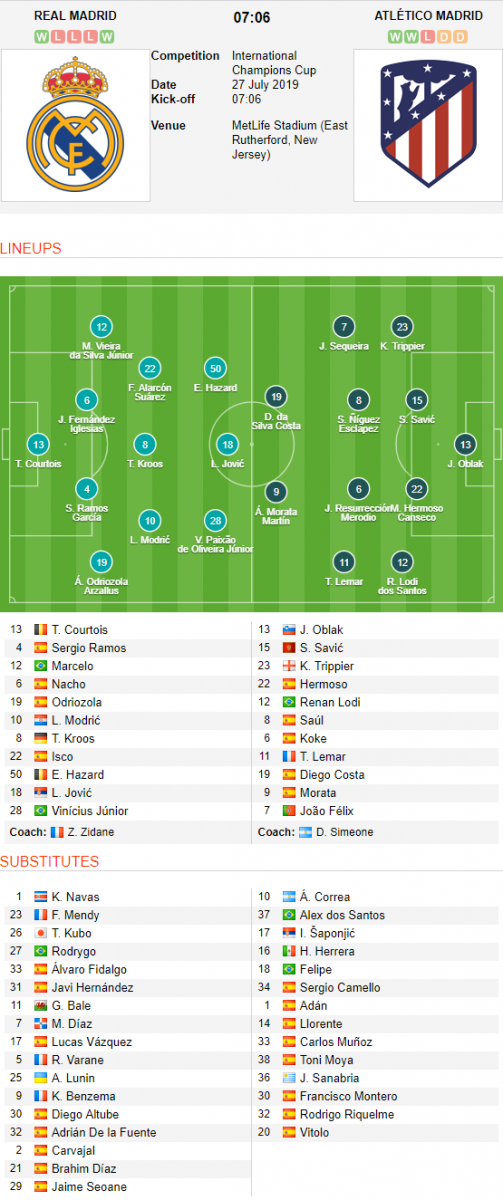 - Trận đấu: Real Madrid vs Atletico Madrid (ICC 2019)