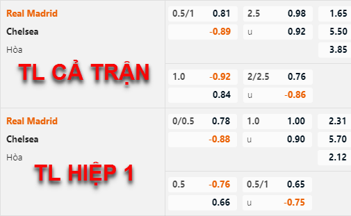 Tỷ lệ chấp của Real Madrid không có nhiều biến động thời gian vừa qua, hiện tại đội chủ nhà vẫn duy trì mức chấp 1 hoà như thời điểm chúng tôi cập nhật lần trước và điểm ăn của 2 cửa cũng không thay đổi nhiều. Tương tự bên phía tỷ lệ tài xỉu mốc 2 1/2 tiếp tục là mốc chính của trận đấu, điểm ăn của cửa tài đã được điều chỉnh tăng nhưng không nhiều.