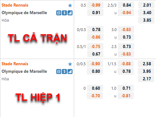 Tỷ lệ chấp 1/2 tiếp tục được duy trì là tỷ lệ chấp chính của Rennes cho tới thời điểm hiện tại, điểm ăn của cửa trên đã được điều chỉnh giảm sao với trước đây nhưng không nhiều. Trong khi đó tỷ lệ tài xỉu của trận đấu lại có xu hướng giảm điểm, mốc 2 3/4 được giữ là mốc chính nhưng điểm ăn của cửa tài đã được điều chỉnh tăng tương đối nhiều.