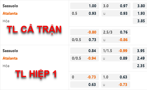 * Chốt kèo trận Sassuolo vs Atalanta (02h45 ngày 05/2)