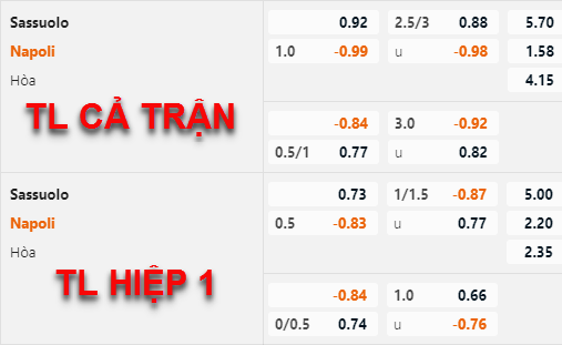 Tung vào sân đội hình mạnh nhất với đầy đủ gương mặt đang có phong độ cao ở thời điểm hiện tại nhưng Napoli lại bất ngờ có chiều hướng giảm nhẹ trên sàn giao dịch châu Á. Kèo chính vẫn giữ với định mức Napoli chấp 1 hòa nhưng đã bị điều chỉnh lợi nhuận xuống còn bỏ rất sâu.