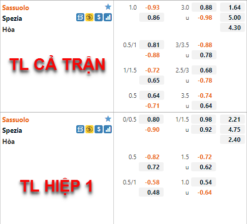 Trên sàn giao dịch châu Á bất ngờ chứng kiến Sassuolo giảm điểm rất lớn. Theo đó, tỷ lệ chấp 1 hòa vào đầu phiên đã bị điều chỉnh xuống còn chấp 3/4 khi bóng chuẩn bị lăn. Đây là tín hiệu không mấy tích cực dành cho cửa trên khi phía đối diện chỉ là Spezia thua kém rất nhiều về thương hiệu cũng như thành tích hiện tại.