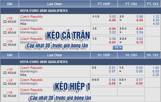* Chốt kèo trận Séc vs Montenegro (01h45)