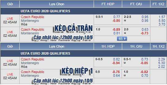 AEGoal.net chốt kèo trực tiếp trận Séc vs Montenegro diễn ra lúc 01h45 ngày 11/6 sau khi dựa trên tính toán, chuyển động về kèo châu Á và đội hình ra sân của 2 đội.