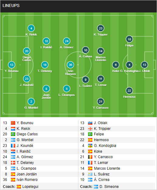 * Đội hình ra sân trận Sevilla vs Atletico Madrid, 03h00 ngày 19/12: VĐQG Tây Ban Nha