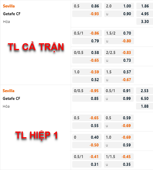 Tỷ lệ chấp của Sevilla không có nhiều thay đổi thời gian vừa qua, hiện tại đội chủ nhà vẫn duy trì mức chấp 1/2 và điểm ăn của hai cửa không có biến động nào đáng kể. Trong khi đó bên phía tỷ lệ tài xỉu mốc 2 hoà vẫn là mốc chính của trận đấu, điểm ăn của cửa tài đã được điều chỉnh tăng nhưng không nhiều.