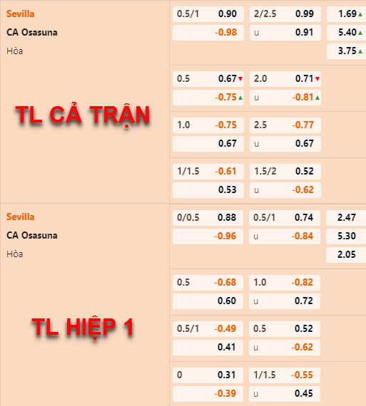 Với những diễn biến trên sàn giao dịch thời gian vừa qua thì lựa chọn cửa trên và tài sẽ là một lựa chọn tốt trận này, Sevilla vẫn là một địa chỉ đáng tin khi thắng cả 9 lần tiếp đón Osasuna gần nhất