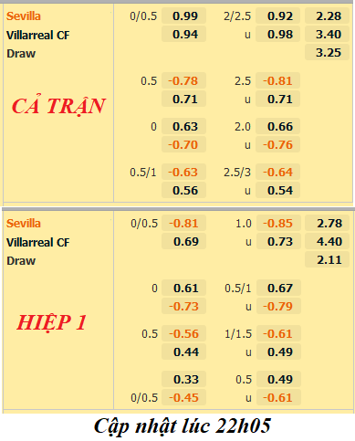 Diễn biến trên sàn giao dịch châu Á chứng kiến tỷ lệ cả trận và cả chỉ số Tài-Xỉu đều giữ được sự ổn định. Điều này thực tế không phải tín hiệu tích cực dành cho Sevilla khi họ được chơi trên sân nhà.