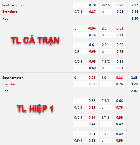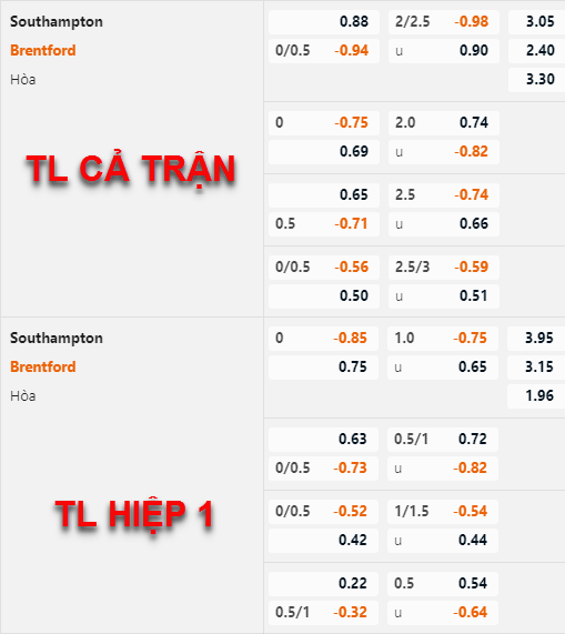 Những diễn biến trên sàn giao dịch thời gian qua đem lại thuận lợi cho lựa chọn cửa trên trận này. Điều này tương đối hợp lý với phong độ hiện tại của hai đội và mức chấp 1/4 của Brentford trận này, hiện tại Southampton cũng là đội có tỷ lệ thắng kèo trên sân nhà thấp nhất giải đấu